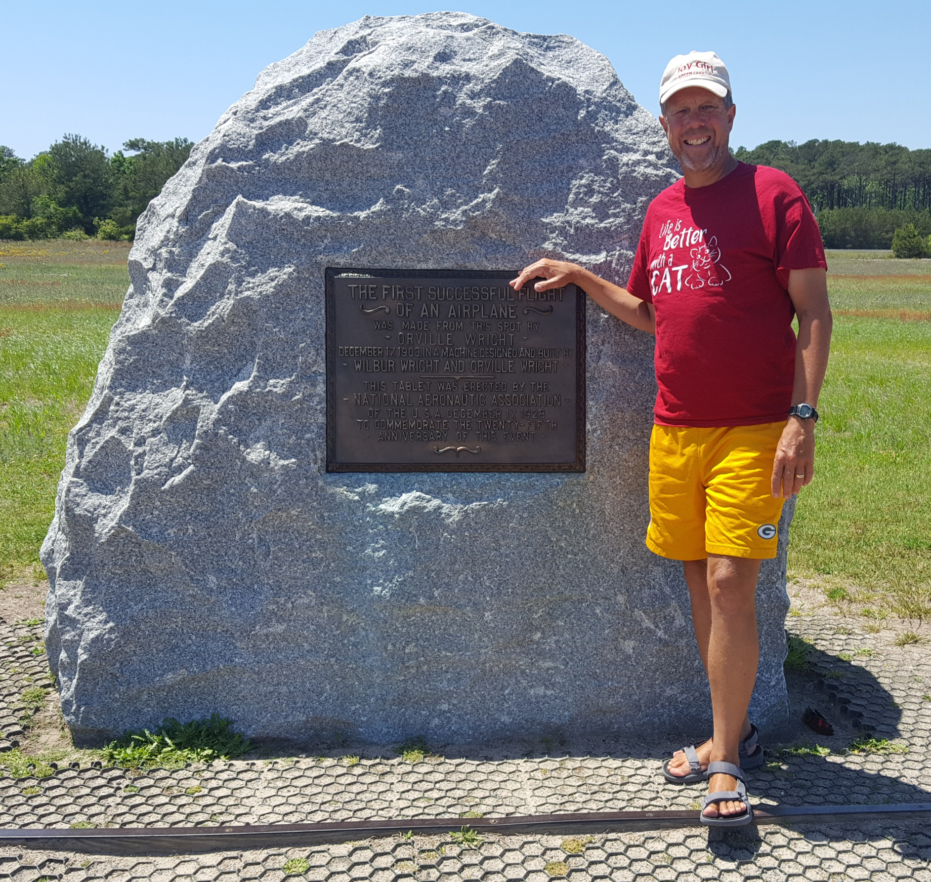 As Joy Girl, her feline officers, and human crew continue to make their way northward, it would only be appropriate for a man with 35 years of flying to visit Kitty Hawk, NC. As you may well know, this is the site of the first powered, manned flight in history. On that glorious December 17 way back in 1903, Orville and Wilbur Wright’s years of research, dreams, and efforts finally came to fruition in a short 12 second, 120 foot long flight along the windswept sands.