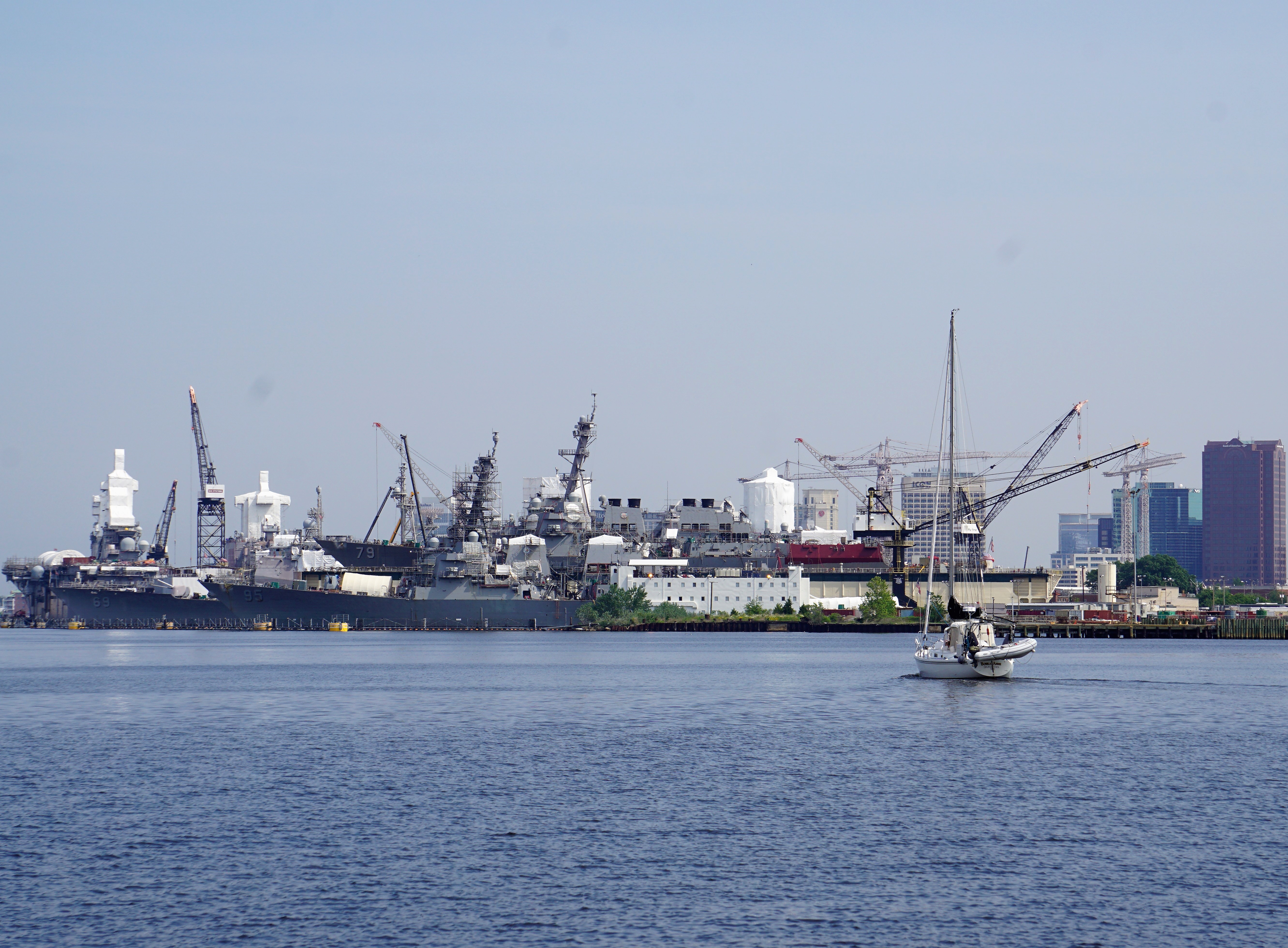 Norfolk Naval Yard with sailboat