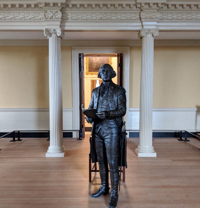 A beautiful metal sculpture stands where they believed he retired and returned to private life. They still have his handwritten speech…it was quite moving to see such humility in the man who was to become our first President.