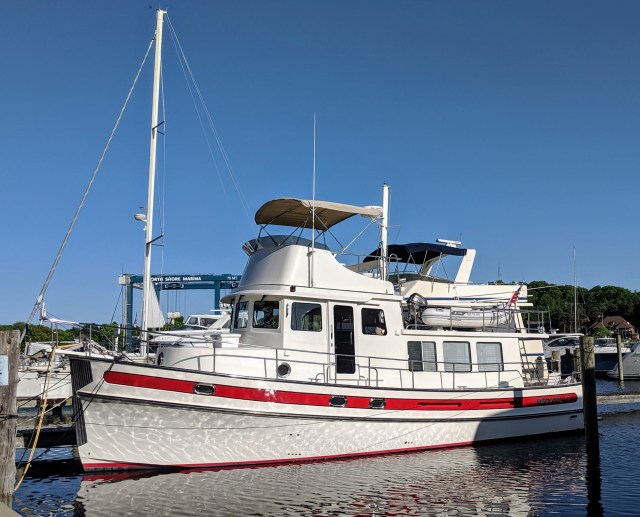 We’ve spent the week provisioning, cleaning, discussing future plans and performing small fixes. Her keel is repaired and all ready to go. We even disassembled the master head (toilet) and replaced a seal by ourselves, woo hoo! But since the marina did not have time (in 7 months?) to fix the electrical issue, we’ve decided to take care of that problem farther north. We received references for electrical experts from the Nordic Tug dealer in Traverse City. Suffice it to say, most marinas seem to work on island time while boat owners anxiously circle around them, waiting breathlessly with wallets in hand for the work to be done. We miss Jesse, our local expert in Hilton Head!