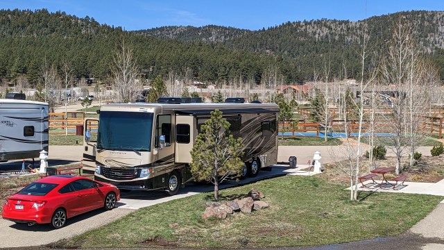 Even with our comfort steering the wind was so bad Craig had to wrestle Liscia to stay in our lane. Unfortunately, a huge gust blew us off course and we clipped a large traffic cone closing off the right lane of I-25. So, we now have a bit of a paint scratch down the side, which broke Craig’s heart. On the other hand, it could have been much, much worse, so we’re grateful!